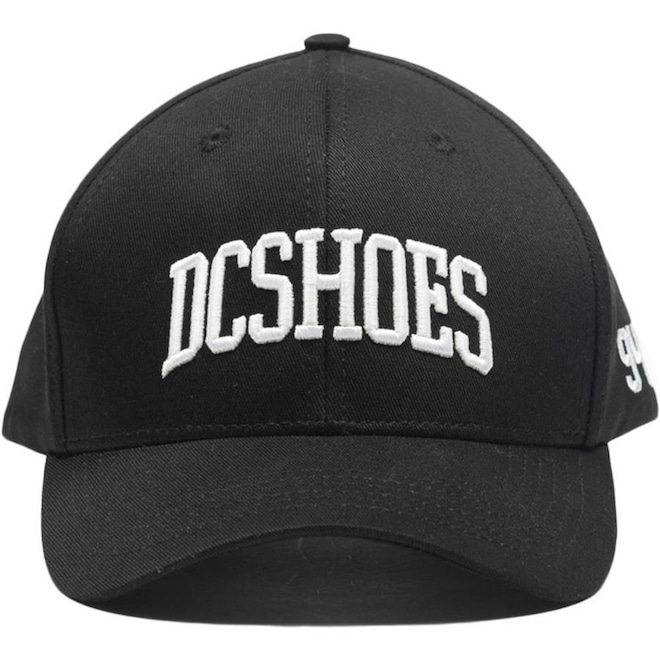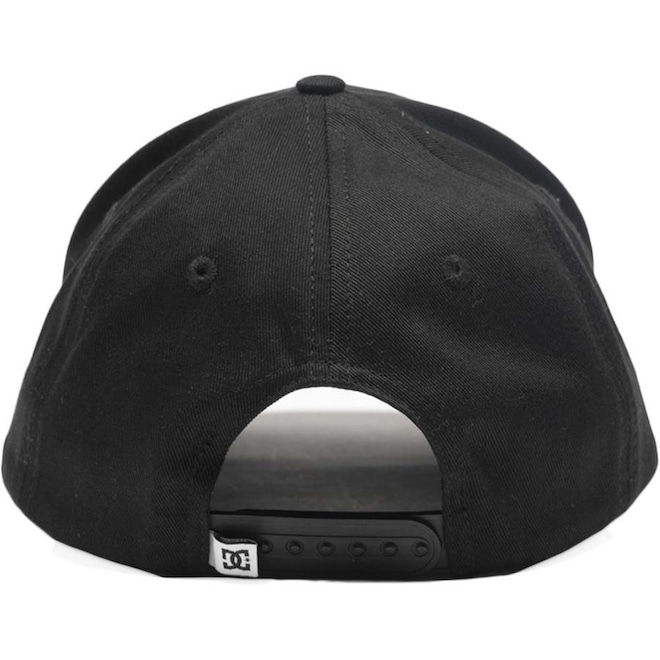 Boné DC Shoes estruturado 6 painéis, snapback, aba curva, bordado de ponto cheio com EVA interno no painel frontal, bordado na lateral esquerda e tecido de sarja pesada, além de etiquetas personalizadas.