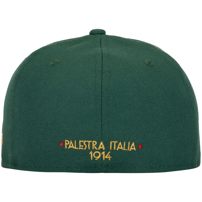 De copa fechada, possui faixa elástica interna para ajuste mais confortável e no predomínio do verde, o escudo retrô em dourado se destaca.