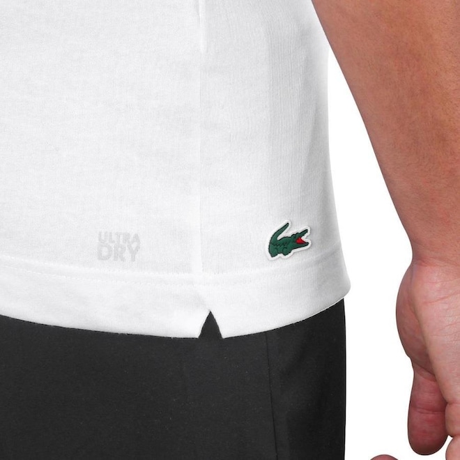 - Detalhamento Camiseta: Camiseta manga curta, gola careca, logo Novak Djokovic estampado em evidência na parte central, emblema de crocodilo aplicado em silicone na parte da frente lado direito próximo a barra, símbolo do Novak Djokovic aplicado na manga esquerta, escrita Ultra Dry na parte de trás lado direito próximo a barra, pequenas aberturas na barra em ambos os lados proporcionando liberdade dos movimentos, caimento tradicional com conforto e suavidade;