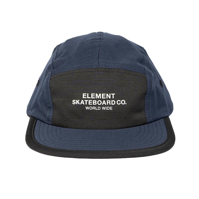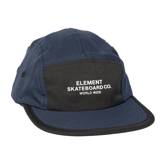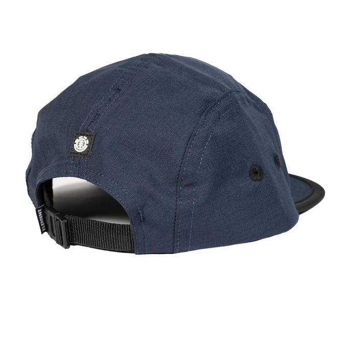 Boné Element five panel de aba reta, com acabamento em viés, patch frontal, fecho com tira ajustável e etiquetas personalizadas.
