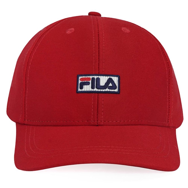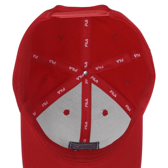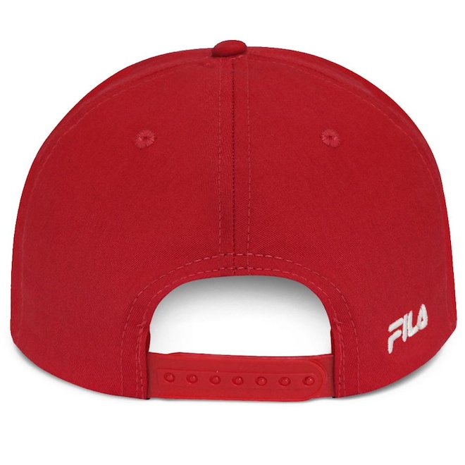 - Detalhamento: Boné com frente estruturada, modelo 6 gomos, fechamento ajustável em plástico, aplicação bordada do nome Fila na parte frontal, aplicação bordada da marca ao lado do ajuste;