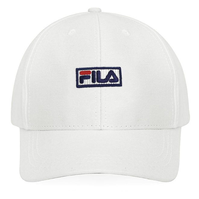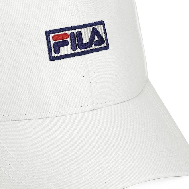 - Detalhamento: Boné com frente estruturada, modelo 6 gomos, fechamento ajustável em plástico, aplicação bordada do nome Fila na parte frontal, aplicação bordada da marca ao lado do ajuste;