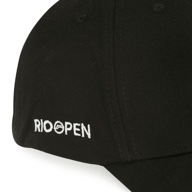 - Detalhamento: Composto por seis gomos, dois gomos frontais estruturados, na região frontal possui o logo F-Box e na lateral a escrita Rio Open bordado, aba flexível, fecho traseiro ajustável em fivela metalizada;