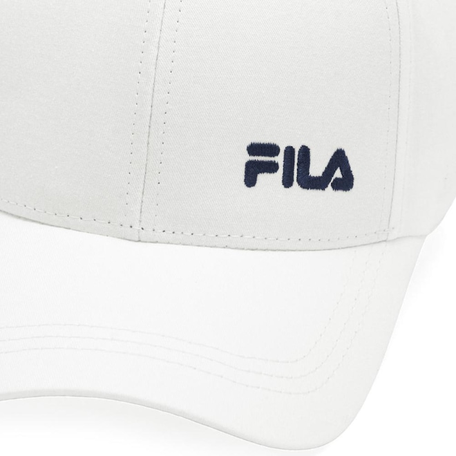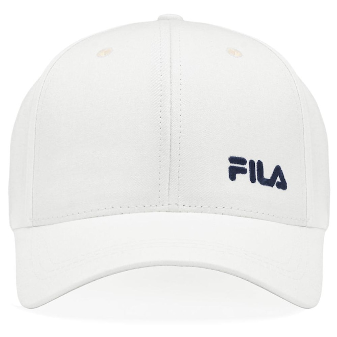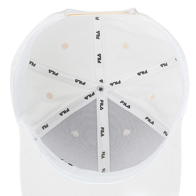 - Detalhamento: Boné com seis gomos sendo os dois da frente estruturado, fechamento ajustável em snapback, aba curva flexível, escrita Fila bordado na parte frontal lado esquerdo;