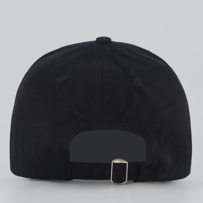 Composição: 100% Algodão Cor predominante: Preto Ajuste: Fivela de metal Indicado para: Casual Peso aproximado: 100g Profundidade: 17 cm Circunferência aproximada: 60-62 cm Origem: Nacional Logo: Bordada Gênero: Unissex Aba: Curva Tamanho único
