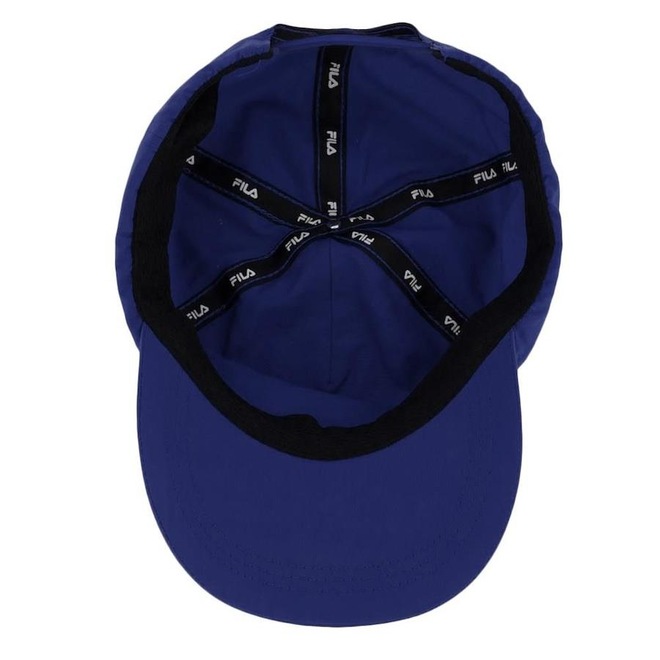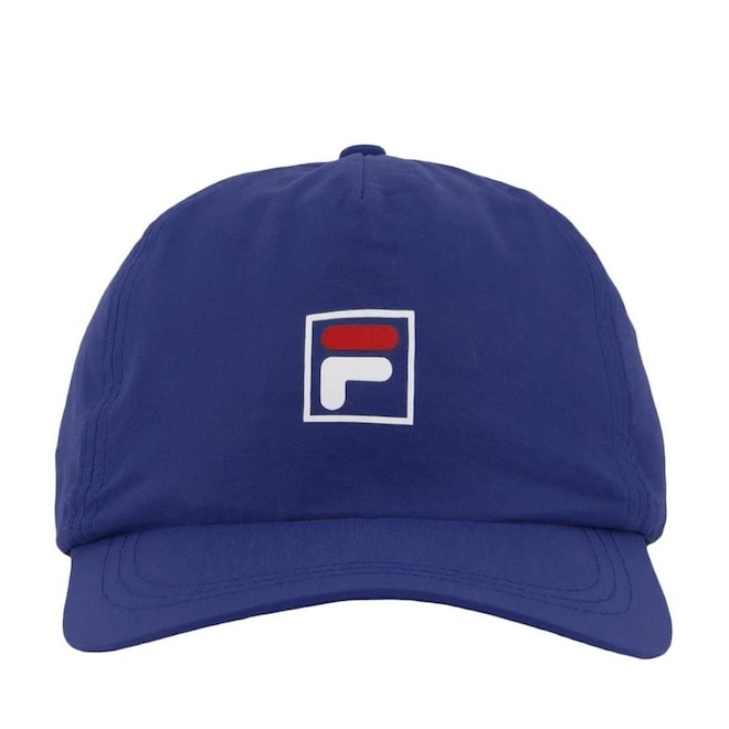 O modelo tem aba curva e seu design é na cor marinho, a logo marca fila vem em destaque na parte frontal e na parte posterior da peça.