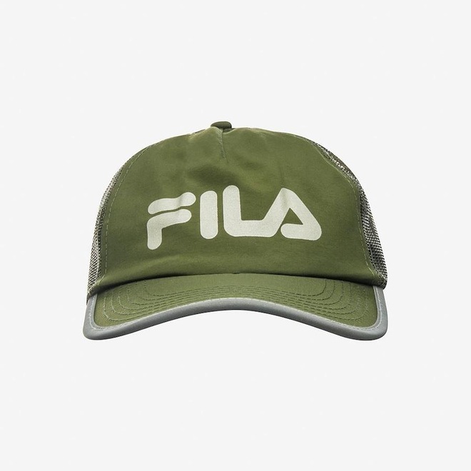 Logos Fila Letter refletivo no painel frontal e bordado na parte traseira.