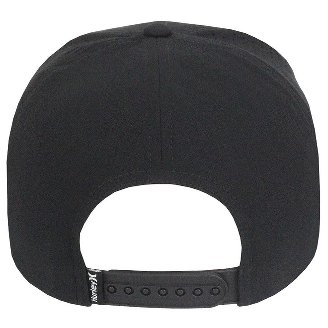 Aba com curva estruturada e forração com faixa de expansão H2O-DRI. Logo Hurley em patch bordado no painel frontal.