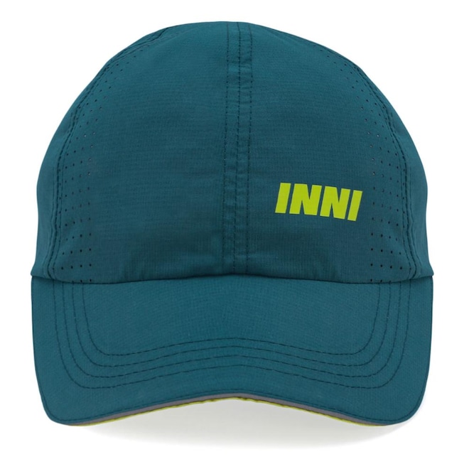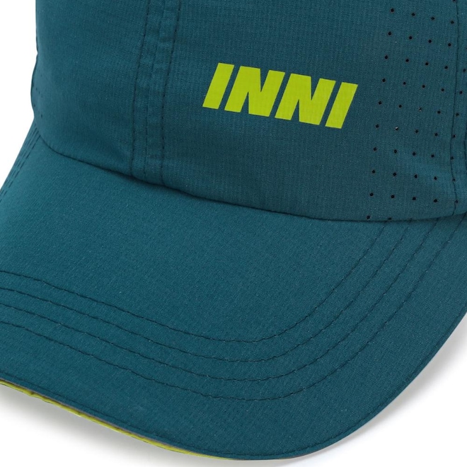- Detalhamento: Boné com aba flexível, seis gomos em tecido leve e com pequenas perfurações para melhor respirabilidade, logo INNI aplicado na parte frontal, faixa interna para garantir maior conforto, ajuste em fecho de contato;
