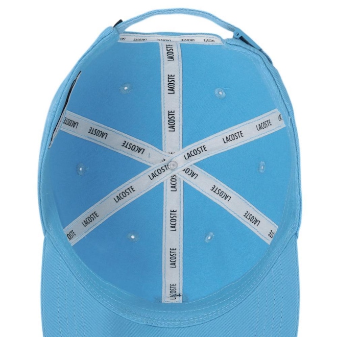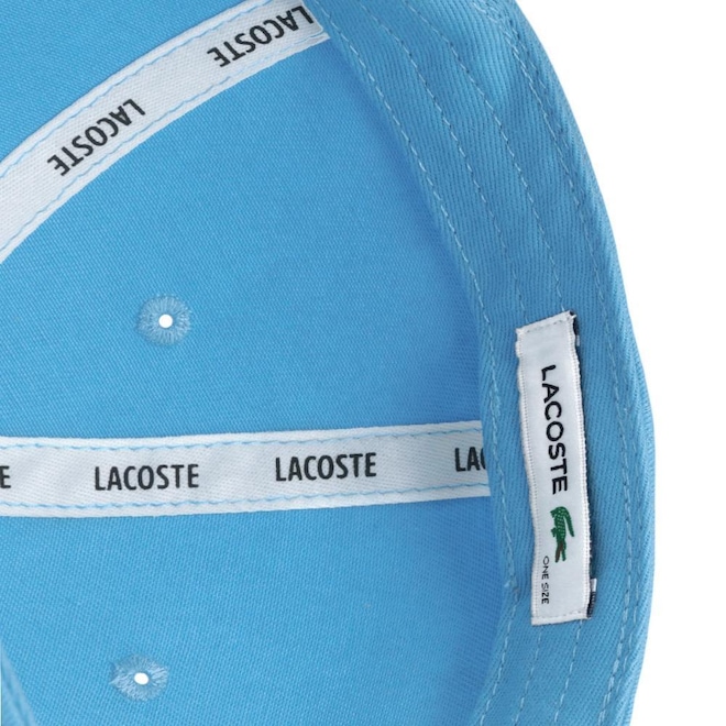 - Detalhamento: Boné com 6 gomos não estruturado e ilhoses para maior respirabilidade, logo Lacoste bordado na parte frontal, fecho de fivela;