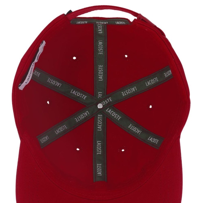 - Detalhamento: Boné com 6 gomos não estruturado e ilhoses para maior respirabilidade, logo Lacoste bordado na parte frontal, fecho de fivela;