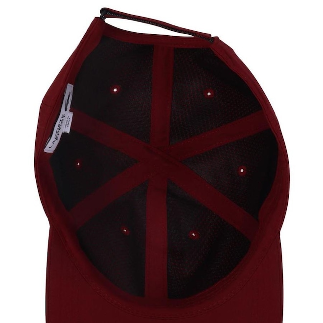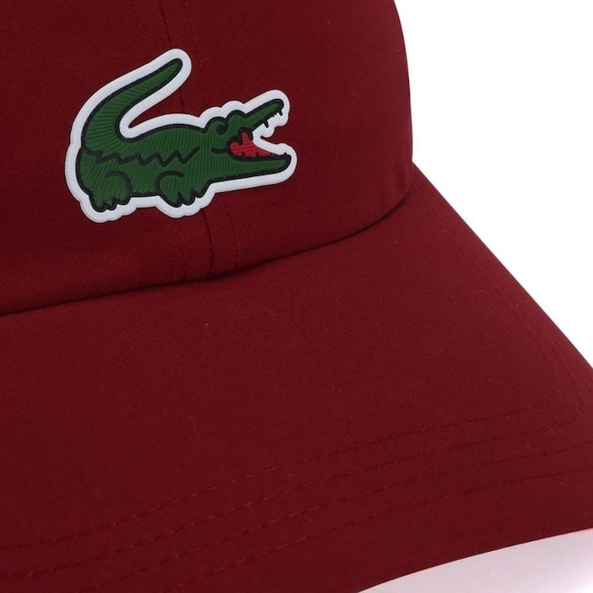 - Detalhamento: Boné com 6 gomos não estruturado e ilhoses para maior respirabilidade, logo Lacoste emborrachado aplicado ma parte frontal, fecho com regulagem de velcro;