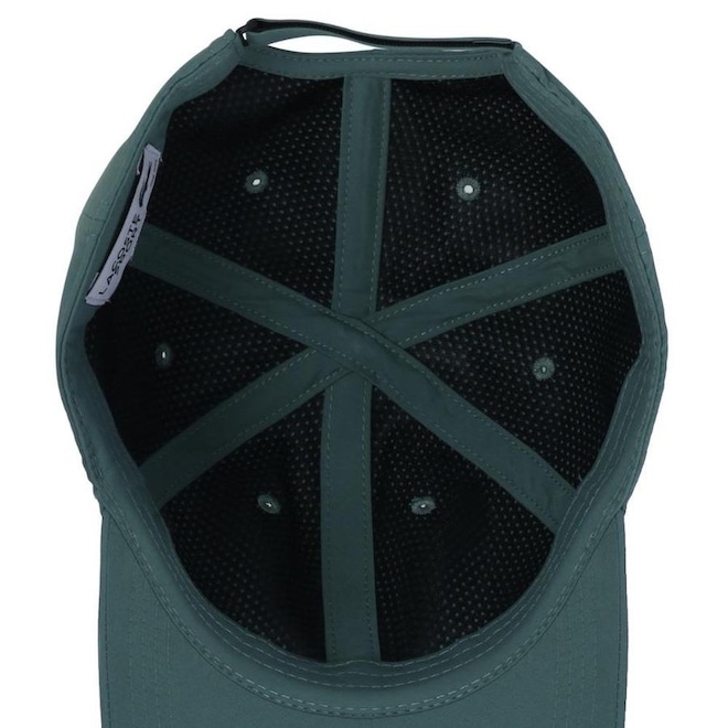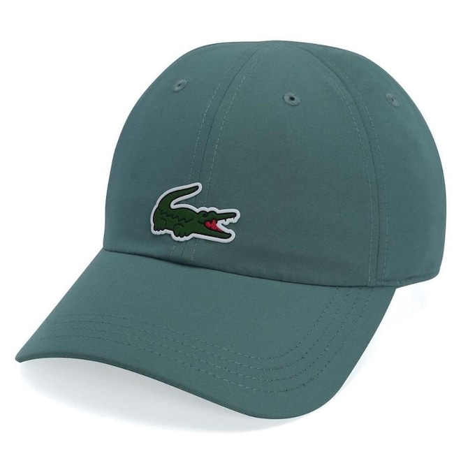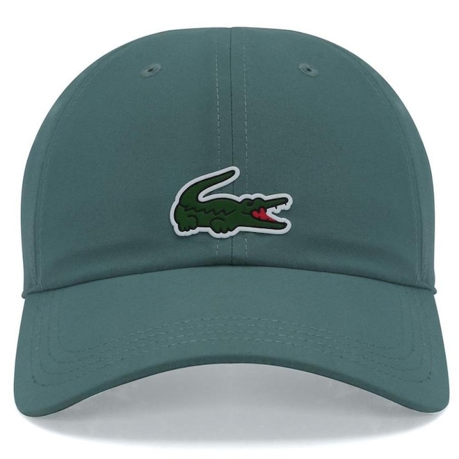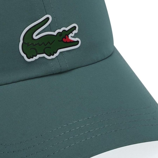 - Detalhamento: Boné com 6 gomos não estruturado e ilhoses para maior respirabilidade, logo Lacoste emborrachado aplicado ma parte frontal, fecho com regulagem de velcro;