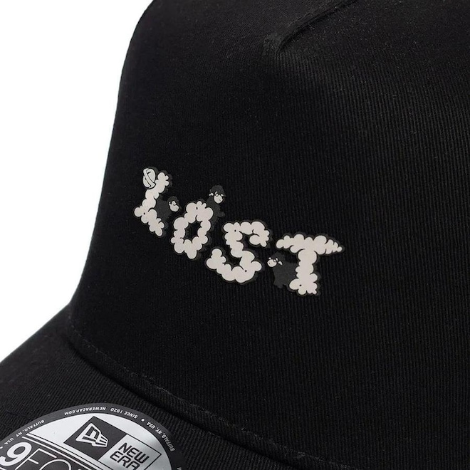 Boné Lost com fechamento em snapback, silk no painel frontal, silk bordado na lateral, tecido diferenciado e etiqueta personalizada 9FORTY na parte superior da aba.