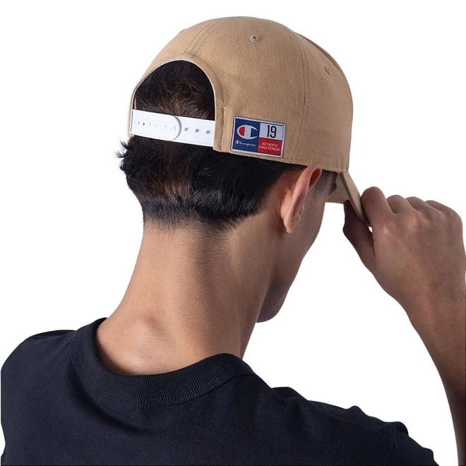 - Patch costurado frontal Logotipo "Champion" bordado com design script no painel frontal;