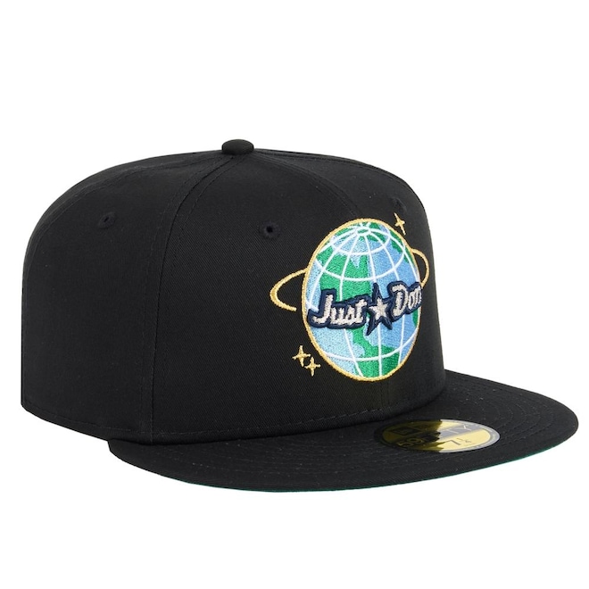 Este boné apresenta um logotipo bordado com o tema Just Don Earth nos painéis frontais e a flag New Era bordada à esquerda.Detalhes adicionais incluem um pequeno bordado acima da flag New Era e uma contra-aba verde.