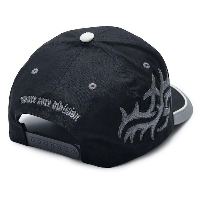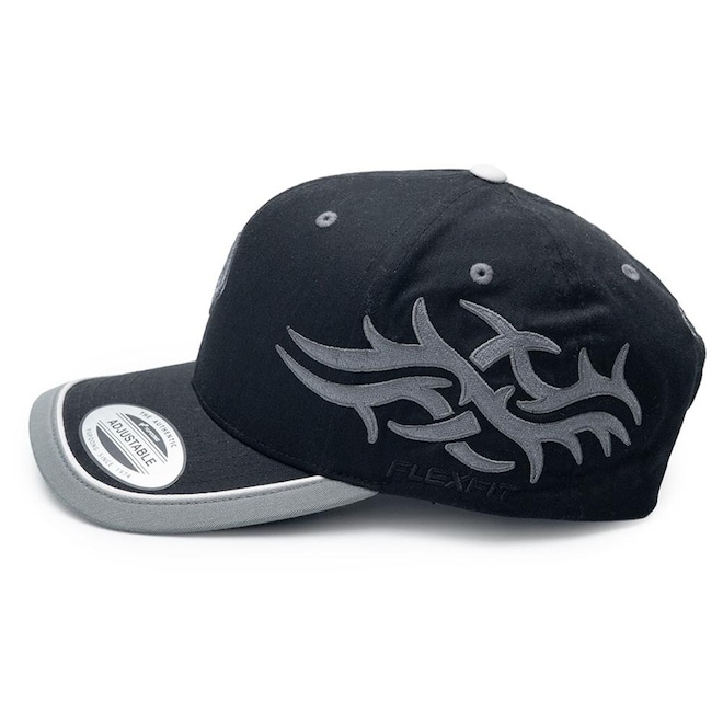 Boné Mcd feito em modelagem aba curva, estampa tribal nas laterais, bordado espada no centro, fecho snapback e tag personalizado MCD.
