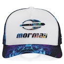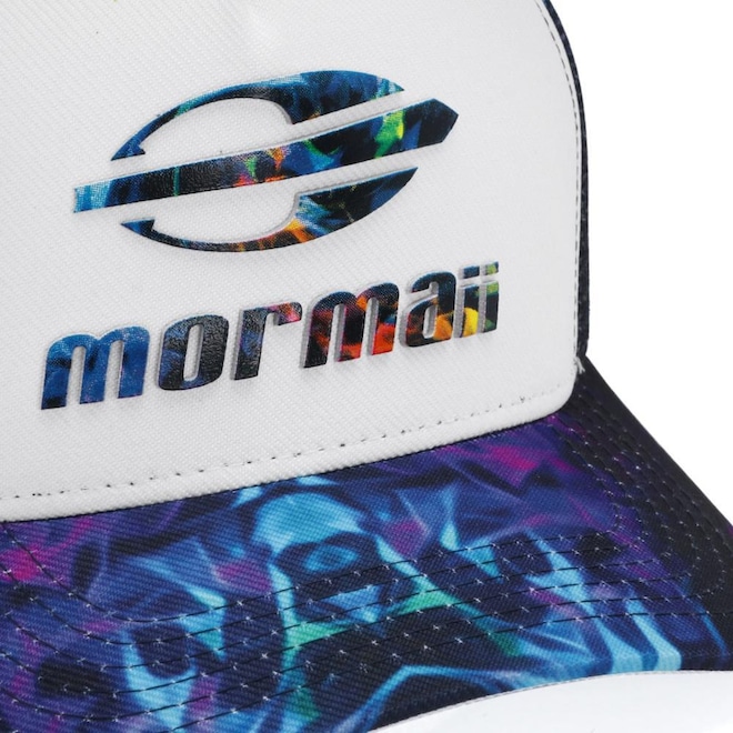 - Detalhamento: Boné com seis gomos sendo os dois da frente estruturados e os quatro de trás em tecido telado com cores contrastantes, fechamento Snapback ajustável, aba curva flexível com cores contrastantes, escrita Mormaii em alto relevo em cor contrastante na parte frontal;