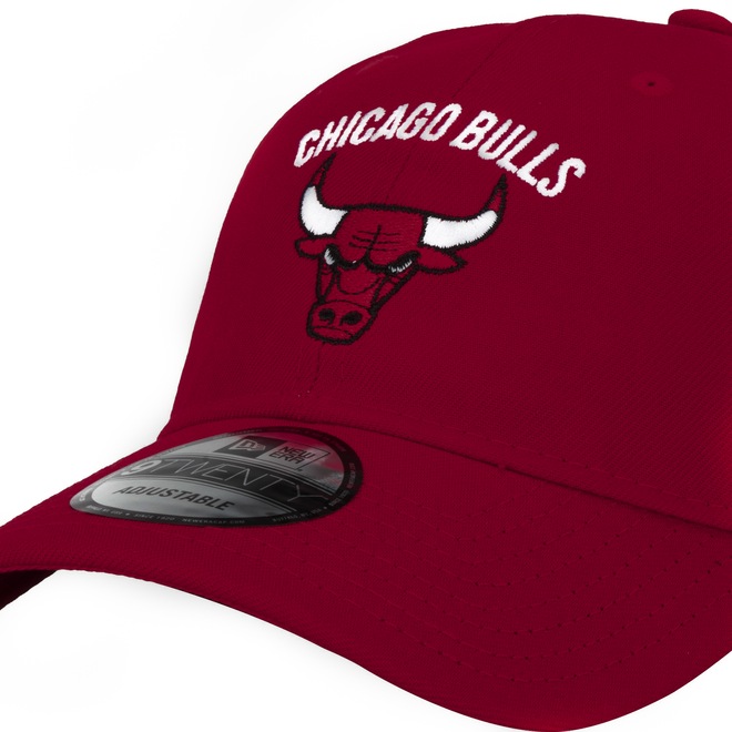 O boné Chicago Bulls possui aba curva, com fechamento strapback.