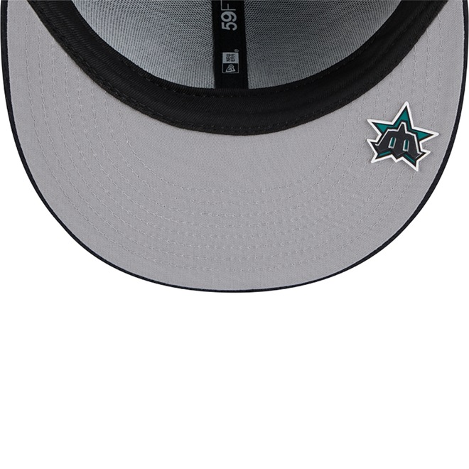 Este boné apresenta um logotipo alternativo do Seattle Mariners bordado nos painéis frontais com um logotipo MLB Batterman na parte traseira. Detalhes adicionais incluem um tecido em mesh, uma contra-aba em cor contrastante e o logotipo da equipe na parte inferior da aba.ref: M16M29