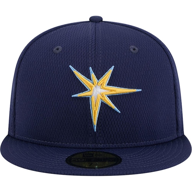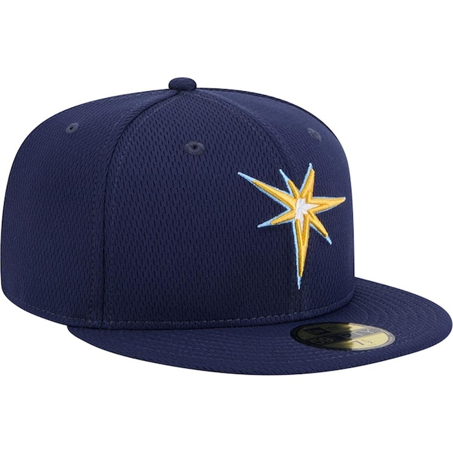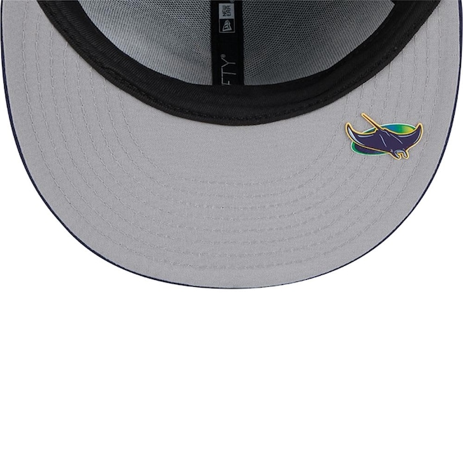 Este boné apresenta um logotipo alternativo do Tampa Bay Rays bordado nos painéis frontais com um logotipo MLB Batterman na parte traseira. Detalhes adicionais incluem um tecido em mesh, uma contra-aba em cor contrastante e o logotipo da equipe na parte inferior da aba.