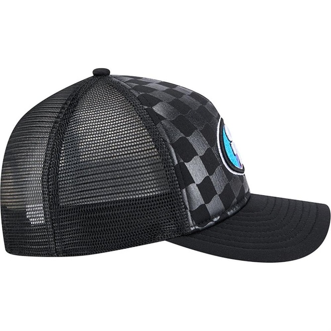 - Logo dos San Francisco 49ers bordado em alto relevo com efeito degradê, painel traseiro em mesh estilo trucker e detalhe interno com faixa de absorção