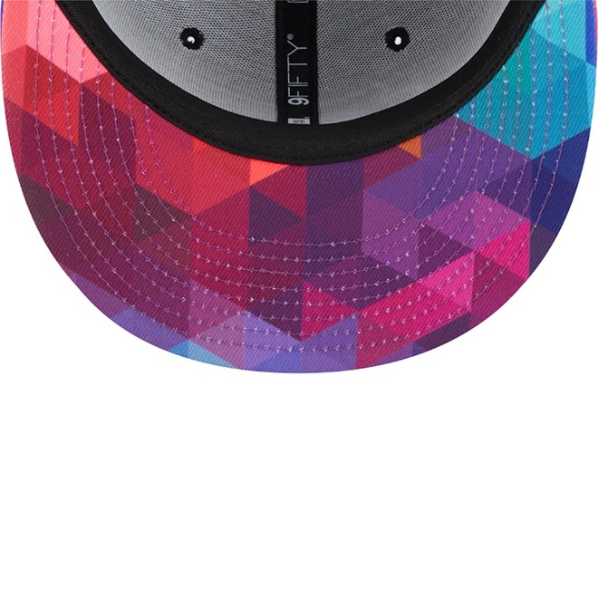 Detalhes adicionais incluem fechamento tipo Snapback na parte traseira e aba estampada.