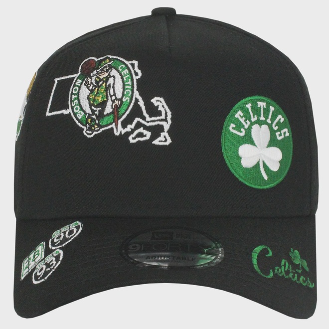 Boné New Era 9Forty A-Frame NBA All Over Boston Celtics Black Importado