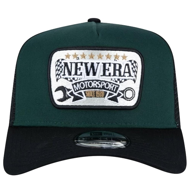 Boné New Era 9FORTY A-Frame Trucker Branded Motorsport Preto e Verde