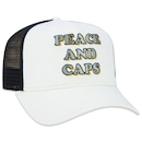Com um design moderno, esse cap possui aba curvada que protege o rosto dos raios solares, costuras reforçadas e fechamento snapback.