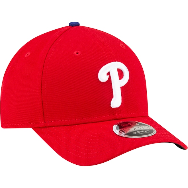 Este boné apresenta o logo bordado do Philadelphia Phillies nos painéis frontais, com o logo da MLB Batterman combinando acima do fecho tipo Snapback na parte traseira e uma contra-aba preta. A silhueta 9FORTY M-Crown tem uma copa ligeiramente mais alta a do 9FORTY original. O 9FORTY M-Crown também possui uma aba mais curta e menos curva, proporcionando um visual mais moderno.ref: M16KWD