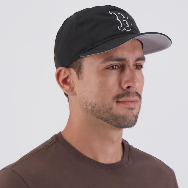 Composição: 100% Algodão Time: Boston Red Sox Ajuste: Pinos plásticos Cor predominante: Preto Peso aproximado: 110g Indicado para: Casual Profundidade: 17 cm Circunferência aproximada: 61 - 63 cm Origem: Importada Escudo: Bordado Aba: Pré Curvada Gênero: Unissex Tamanho único