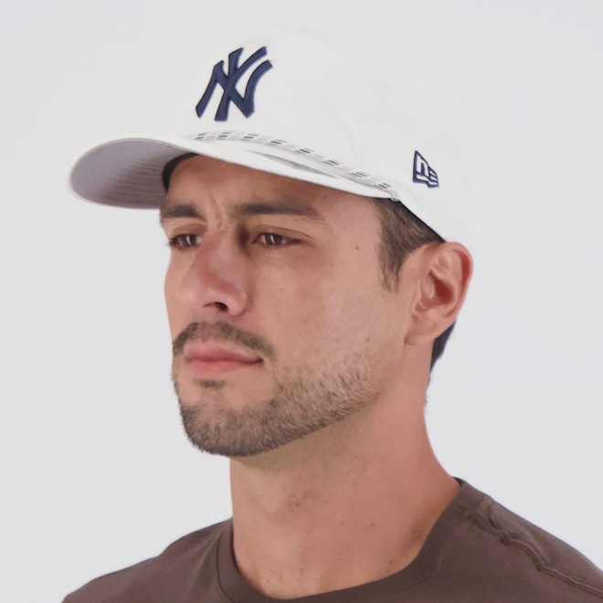Composição: 100% Poliéster Time: New York Yankees Ajuste: Pinos plásticos Cor predominante: Branco Peso aproximado: 100g Indicado para: Casual Profundidade: 16cm Circunferência aproximada: 60 - 64 cm Origem: Importada Escudo: Bordado Aba: Pré Curvado Tamanho único