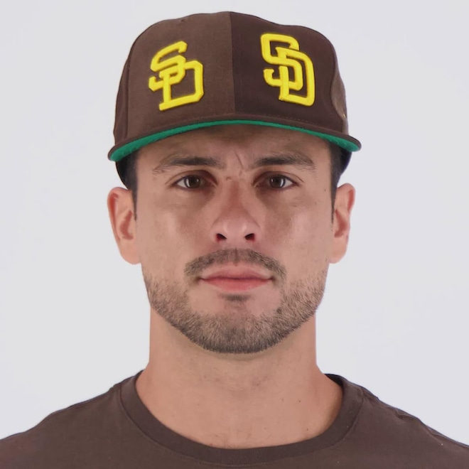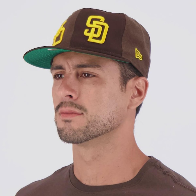 Composição: 60% Poliéster e 40% Lã Cor predominante: Marrom Peso aproximado: 100 g Ajuste: Elástico Indicado para: Casual Profundidade: 17 cm Circuferência aproximada: 60 - 64 Time: San Diego Padres Origem: Nacional Gênero: Unissex Aba: Reta Tamanho único