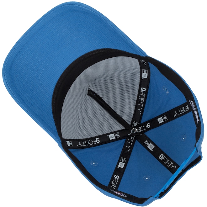 De aba curva, com fechamento snapback, além de faixa interna em tecido.