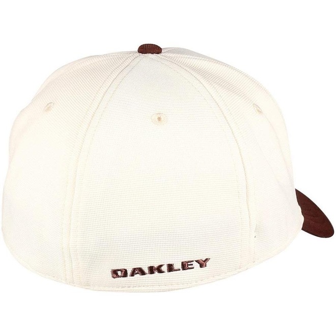 Boné Oakley Classic com aba sutilmente curvada, ícone metálico elipse na parte frontal, faixa elástica com absorção da umidade (sweat headband), ilhós de ventilação, flexfi