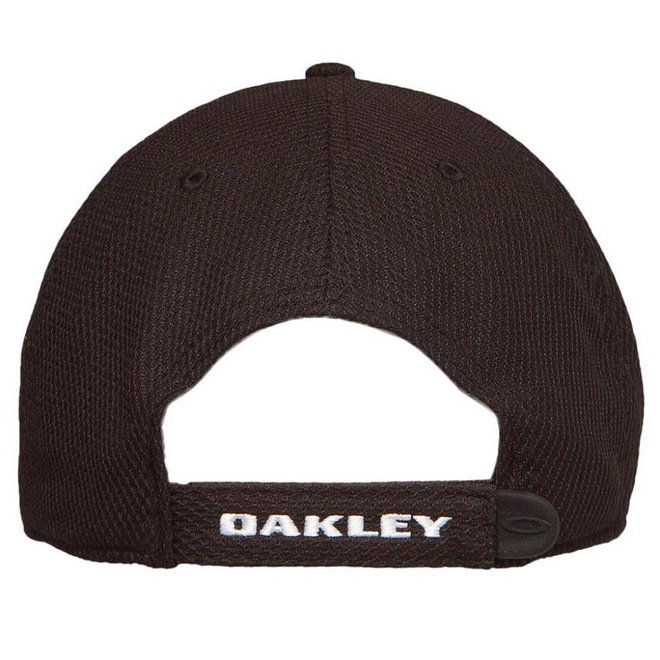 Boné Oakley Golf Ellipse Hat tem aba curva, fecho no estilo Strapback e faixa acolchoada com tecnologia O-Hydrolix. A tecnologia OHydrolix auxilia na evaporação do suor garantindo que a pele respire com mais facilidade. A proteção UV e a cobertura preta reduzem os efeitos da luz solar intensa. Como o boné é ajustável na parte traseira, ele serve desde tamanho S/M até o tamanho L/XL.