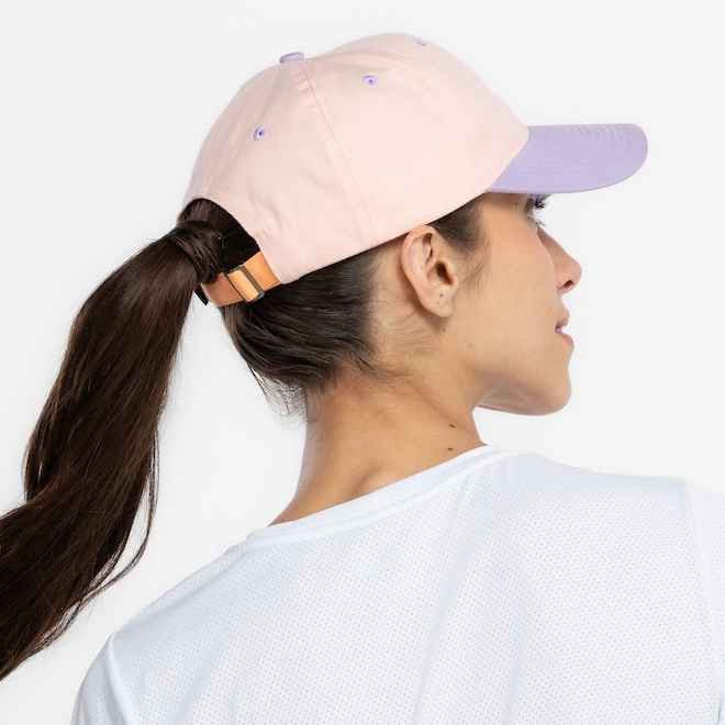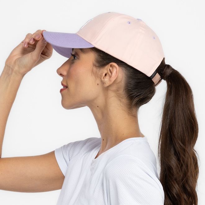 De aba curva, o boné possui fecho strapback que facilita o ajuste de forma personalizada.