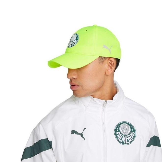 Nome: Boné Puma Treino Palmeiras Gênero: Unissex Indicado para: Uso Casual Composição: Exterior: 100% Poliéster, Forro: 100% algodão Fechamento: De pressão Aba: Curva Código do Artigo: 024557-01Marca: Pumaref: M14U9T