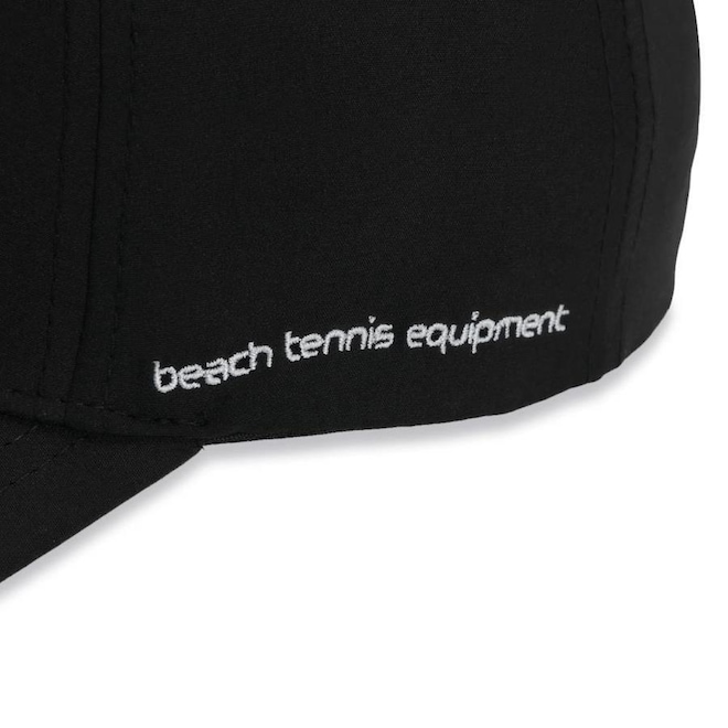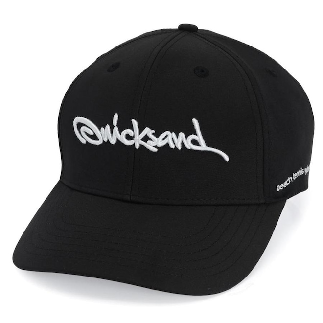 - Detalhamento: Boné de seis gomos, sendo os dois da frente estruturados, bordado com a escrita Quicksand aplicado na parte frontal em cor contrastante, regulagem com fechamento Snapback, faixa interna com tecido absorvente que auxilia na absorção da transpiração, escrita "beach tennis equipment" na lateral esquerda, aba curva;