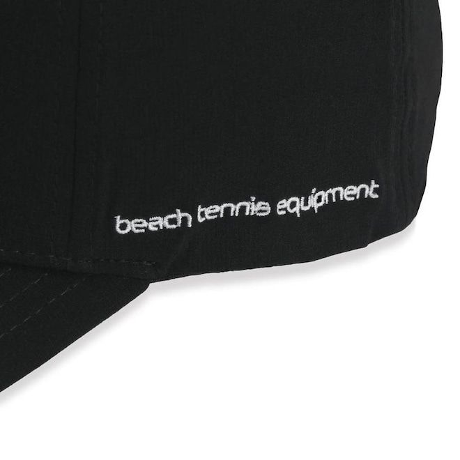- Detalhamento: Boné de seis gomos, sendo os dois da frente estruturados, bordado com a escrita Quicksand aplicado na parte frontal em cor contrastante, regulagem com fechamento em velcro, faixa interna com tecido absorvente que auxilia na absorção da transpiração, escrita "beach tennis equipment" na lateral esquerda, aba curva;