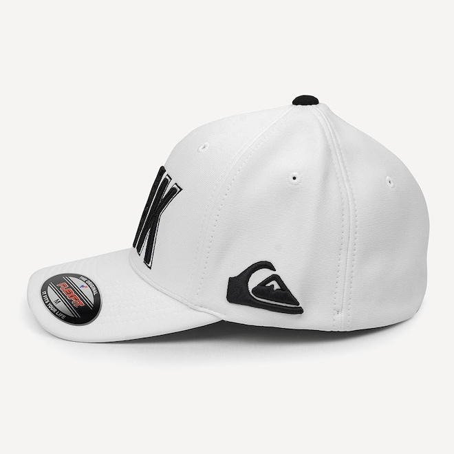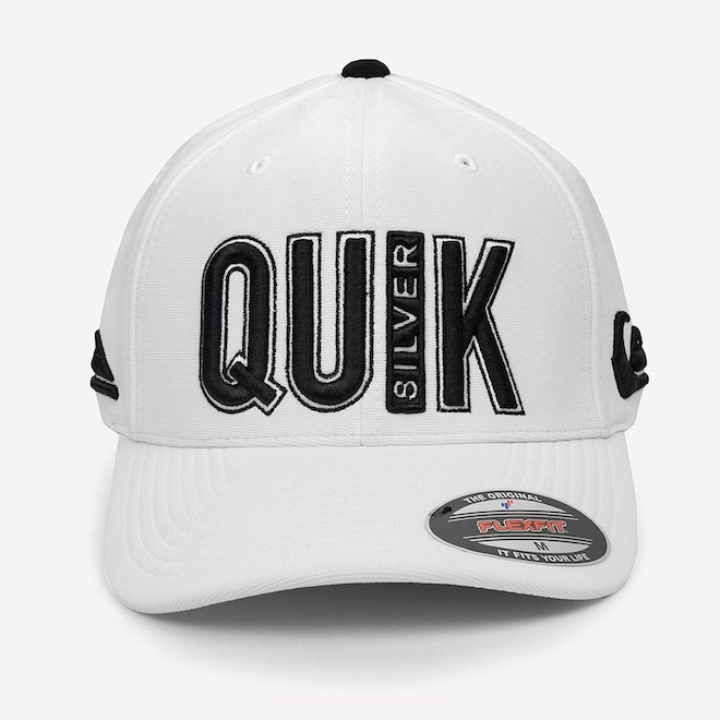 Boné QuikSilver 6painel Flexfit, faixa anti suor por toda a circunferência interna, bordado 3D da assinatura centralizado no painel frontal e bordado contrastante da logo nas laterais, aba interna sublimada e etiqueta localizada na barra traseira.