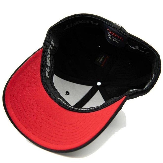 Boné Quiksilver 6pannel Flexfit, tecido flexível, faixa anti suor na circunferência interna, bordado em patch do logo centralizado no painel frontal e assinatura na lateral, aplicação de etiqueta na barra traseira, aba interna lisa, boné fechado e etiquetas personalizadas.