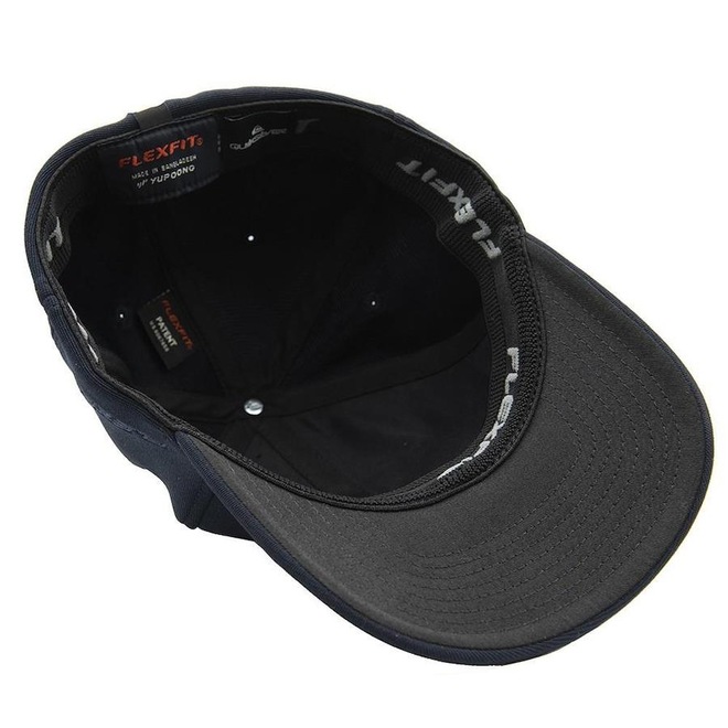 Boné Quiksilver 6 painel snapback Flexfit, tecido mescla flexível, faixa anti suor na circunferência interna, placa logo em contorno metálico centralizado no painel frontal, etiqueta clip localizada na barra traseira e boné fechado.