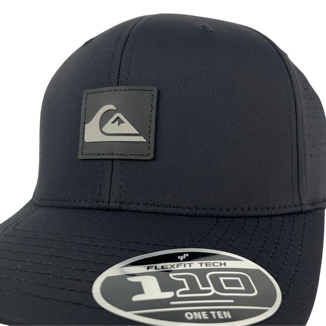 Boné Flexfit. Tecido anfíbio com mais durabilidade. 6 painéis com furinhos a laser. Com faixa anti suor por toda a circunferência. Aplicação de logo emborrachado centralizado no painel frontal. Fechamento traseiro em velcro