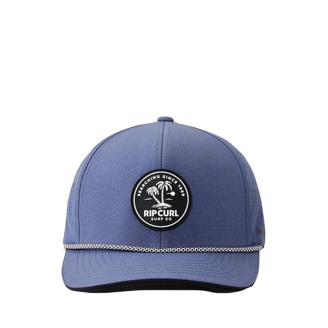Boné Rip Curl Aba Curva com construção leve, 1-10 Flexfit, hydro protech, estruturado, patch em silicone, painel de malha cortado a laser, respirável e detalhe da corda frontal.