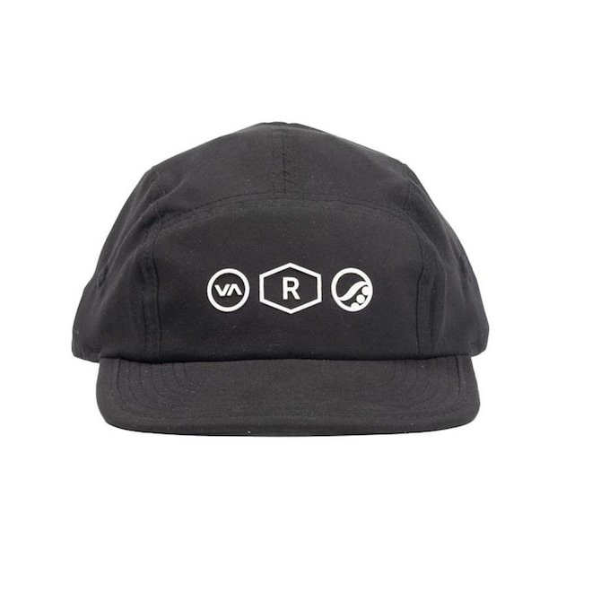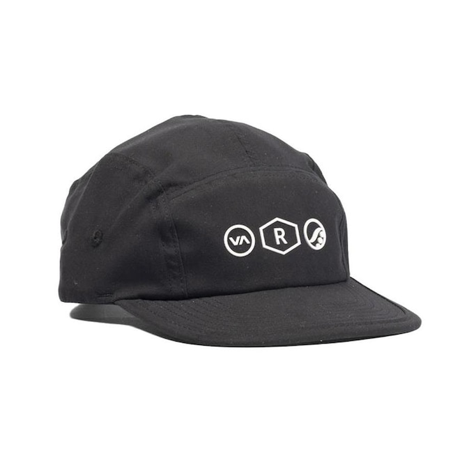 Boné Rvca feito em modelagem five panels com aba flexível em microfibra com estampa alto relevo na frente e nateral, fecho de engate tic tac e etiqueta personalizada na parte de trás.