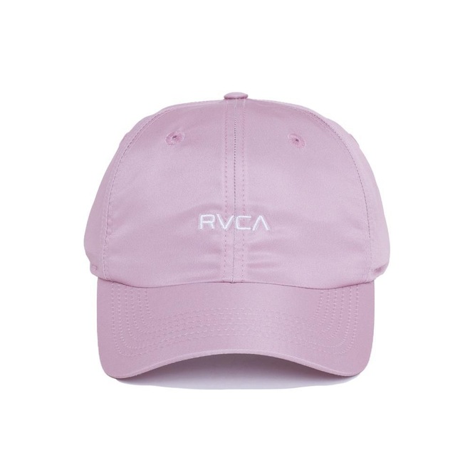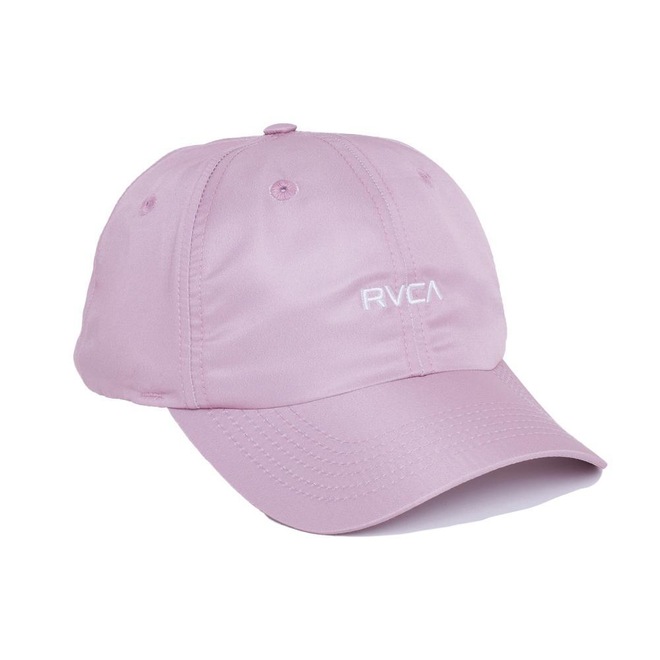 Boné Rvca desestruturado em tecido de microfibra, bordado frontal, regulador em snapback plástico e etiqueta personalizada atrás.