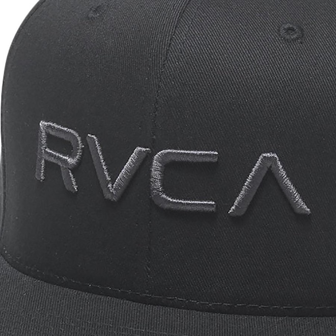 BONÉ RVCA ABA RETA RVCA TWILL SNAPBACK II Boné aba reta estruturado snapback com fecho plástico em tecido de acrílico com lã, com aplique big RVCA frontal e etiquetas personalizada atrás . Características Principais: Composição: 80% Acrílico e 20% Lã. Garantia contra defeito de fabricação.