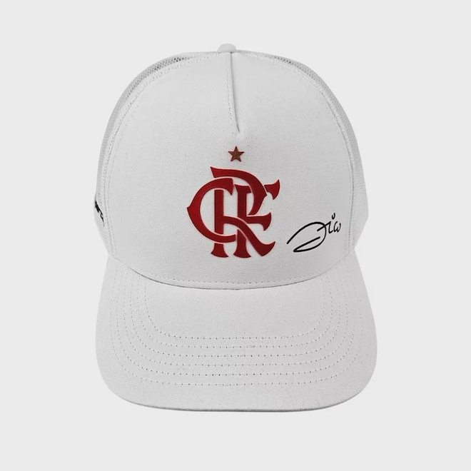 Boné Trucker Flamengo Silk 3D Zico Branco -